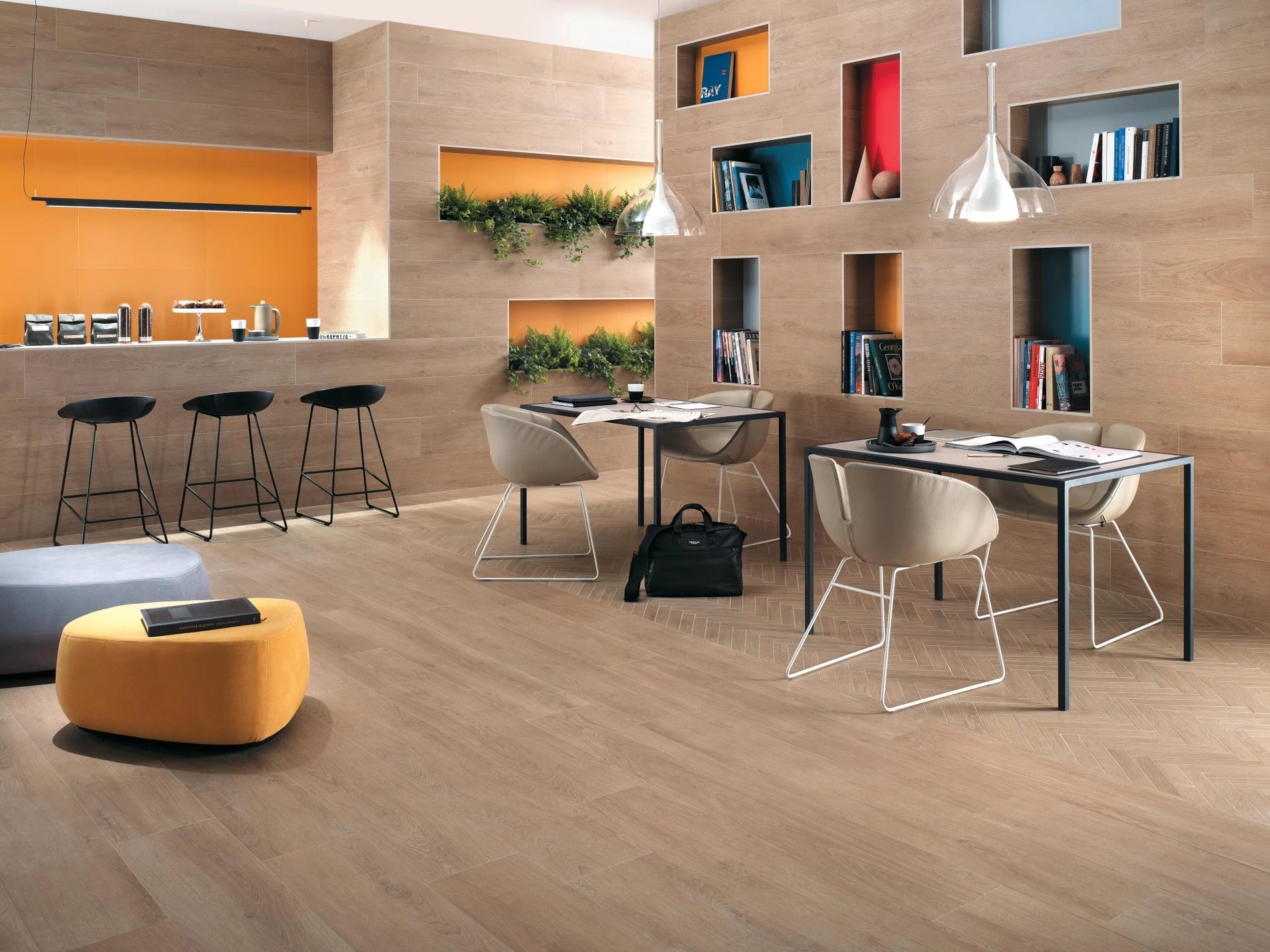 Керамогранит Nid - идеальный выбор для создания элегантного и комфортабельного пространства. Его фактура под дерево идеально имитирует паркет, придавая помещению благородство и тепло. Высокая прочность и легкость в уходе делают этот керамогранит практичным решением для любого помещения.