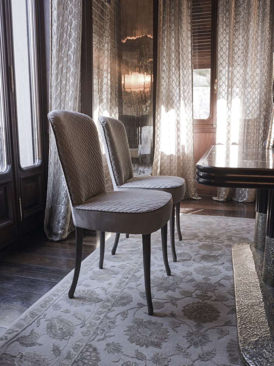Изящные пропорции стула Ambra подчёркивает плетёный стеганый узор на сиденье и внутренней стороне спинки. Строгие линии делают его идеальным дополнением к любому интерьеру, а ножки из массива дерева оживляют ансамбль, создавая изящный и изысканный образ.