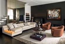 Прямые и изогнутые линии, идеально гармонирующие друг с другом, очерчивают мягкие формы дивана Ansel. Элегантные пуговицы украшают его профиль, придавая изделию элегантный и стильный характер. Коллекция состоит из различных предметов, которые могут использоваться в качестве самостоятельных островных элементов или присоединяться друг к другу для получения необычных композиций.  Отличительной особенностью является низкий подлокотник со вспомогательной поверхностью из оникса с подсветкой. Строгие формы и компактные объемы позволяют Ansel свободно и элегантно облачаться в любую ткань и кожу из эксклюзивной текстильной коллекции Longhi.