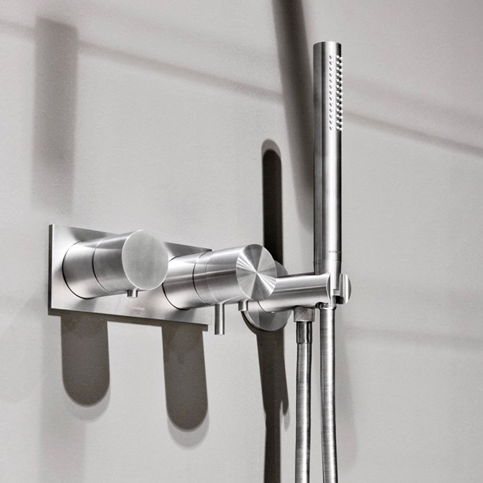 Antonio Lupi Ayati Смеситель для душа, термостатический, встраиваемый, с запорным вентилем и распределителем потоков на 3 выхода, цвет: полированная сталь