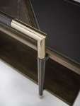 Коллекция Araldo отличается богатством материалов, фактур и гибкостью. В частности, консоль Araldo с воздушной структурой и кожаной обивкой с золотистыми деталями подчёркивает красоту материалов: верхняя столешница украшена бордюром из патинированного бронзового дерева со вставками из керамогранита с мраморным эффектом и кожи, гармонирующими с конструкцией. Нижняя полка выполнена из патинированного бронзового дерева. Araldo — это предмет мебели, в котором чёткая форма является манифестом.