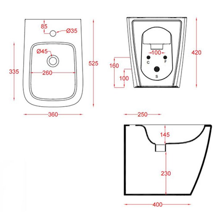 AZZURRA Pratica Биде...AZZURRA Pratica Биде напольное 52,5х34х42см, цвает белый