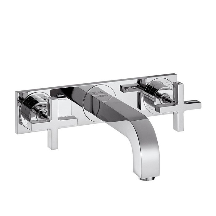Axor Citterio, Смеситель для раковины, на3 отверстия, с крестовымирукоятками, панелью и изливом226 мм, настенный монтаж, СМ, цвет: хром