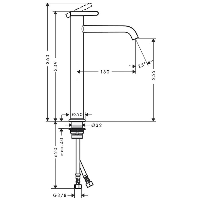 Axor One Смеситель для раковины, 1 отв., излив h260мм, с незап.сливом, цвет: черный матовый