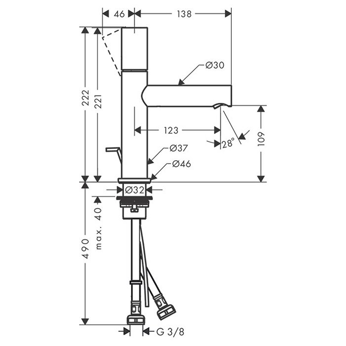 Hansgrohe Смеситель ...Hansgrohe Смеситель для раковины, однорычажный, для водонагревателей открытого типа, цвет: хром