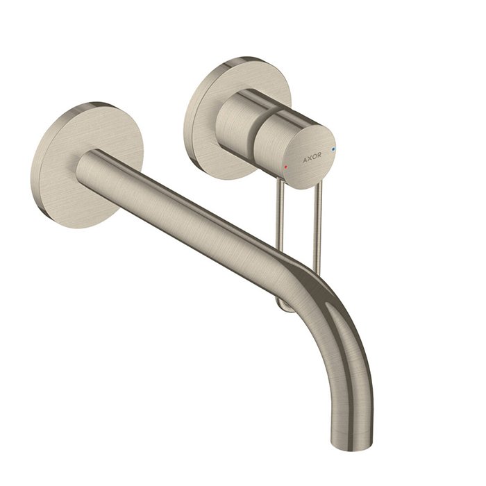 Axor Uno Встраиваемый смеситель для раковины, на 2 отв., излив 225мм, с незапираемым донным клапаном, цвет: шлифованный никель