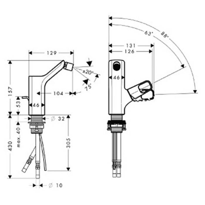 AXOR Urquiola, Смеситель для биде, однорычажный, со сливным гарнитуром, цвет: хром