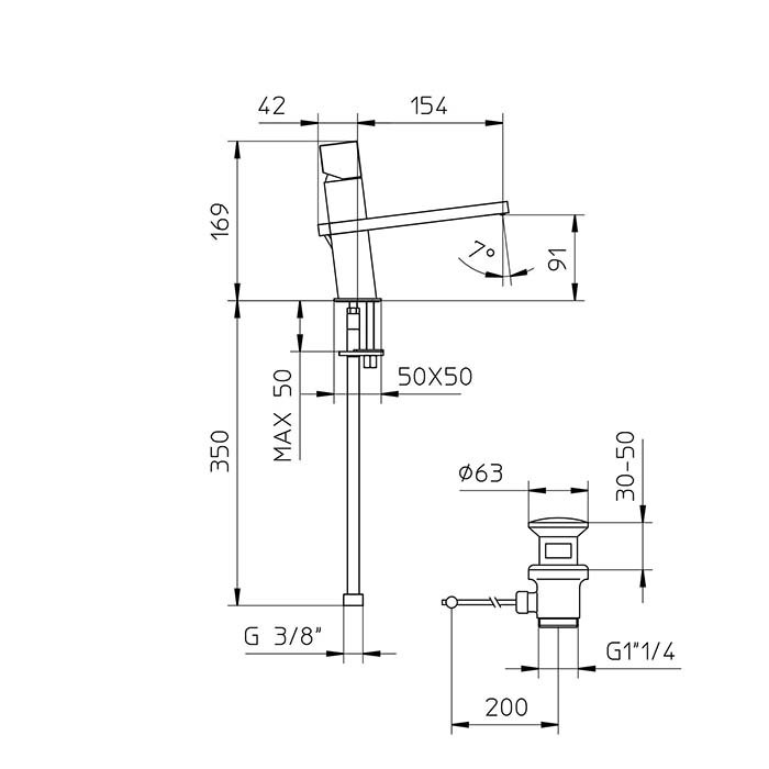 Bossini Cube Смеситель для раковины на 1 отв., c заглушкой 1”1/4, цвет: никель шлифованный