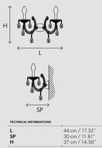 Бра Masiero DRYLIGHT A2 WHITE PREMIUM, подвески из хрусталя, подсветка: белая