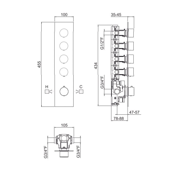 Ceadesign INNOVO Нас...Ceadesign INNOVO Настенный термостатический смеситель для ванны/душа с системой Aqua Stop, 2/3-ходовым переключателем и цилиндрическим ручным душем Ø 18 мм, 3 отверстия, цвет на выбор