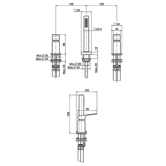 Carlo Frattini Fit Смеситель на борт ванны, на 3 отв., с ручным душем, без излива, цвет: хром