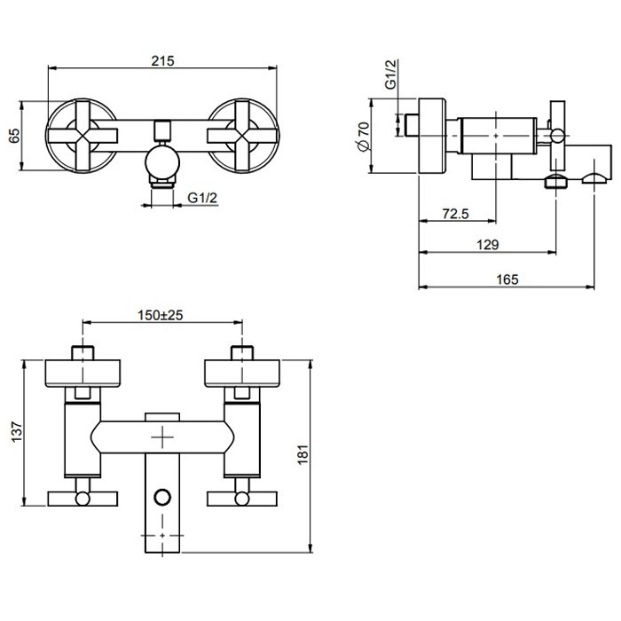 Fantini Cafe/Nostrom...Fantini Cafe/Nostromo Смеситель для ванны, встраиваемый, на 2 источника, излив 150мм, (наружняя часть), цвет: хром