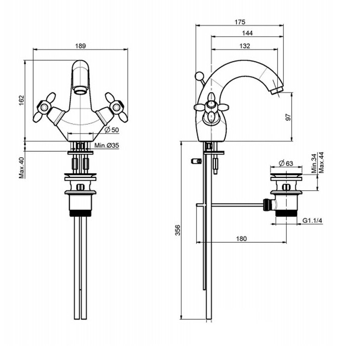 Ceadesign INNOVO Сме...Ceadesign INNOVO Смеситель на два отверстия с поворотным изливом H. 360 мм, 2 отверстия, цвет на выбор
