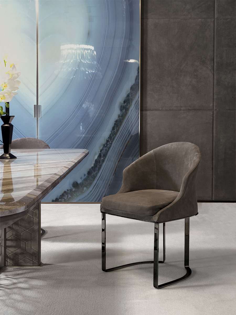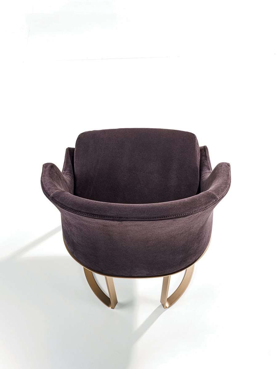 Стул Daphne отличается обволакивающей спинкой и сочетает элегантность пропорций с эргономичностью. Благодаря тщательной текстильной обработке обивка идеально облачает изделие. Мягкий каркас опирается на элегантные металлические ножки.