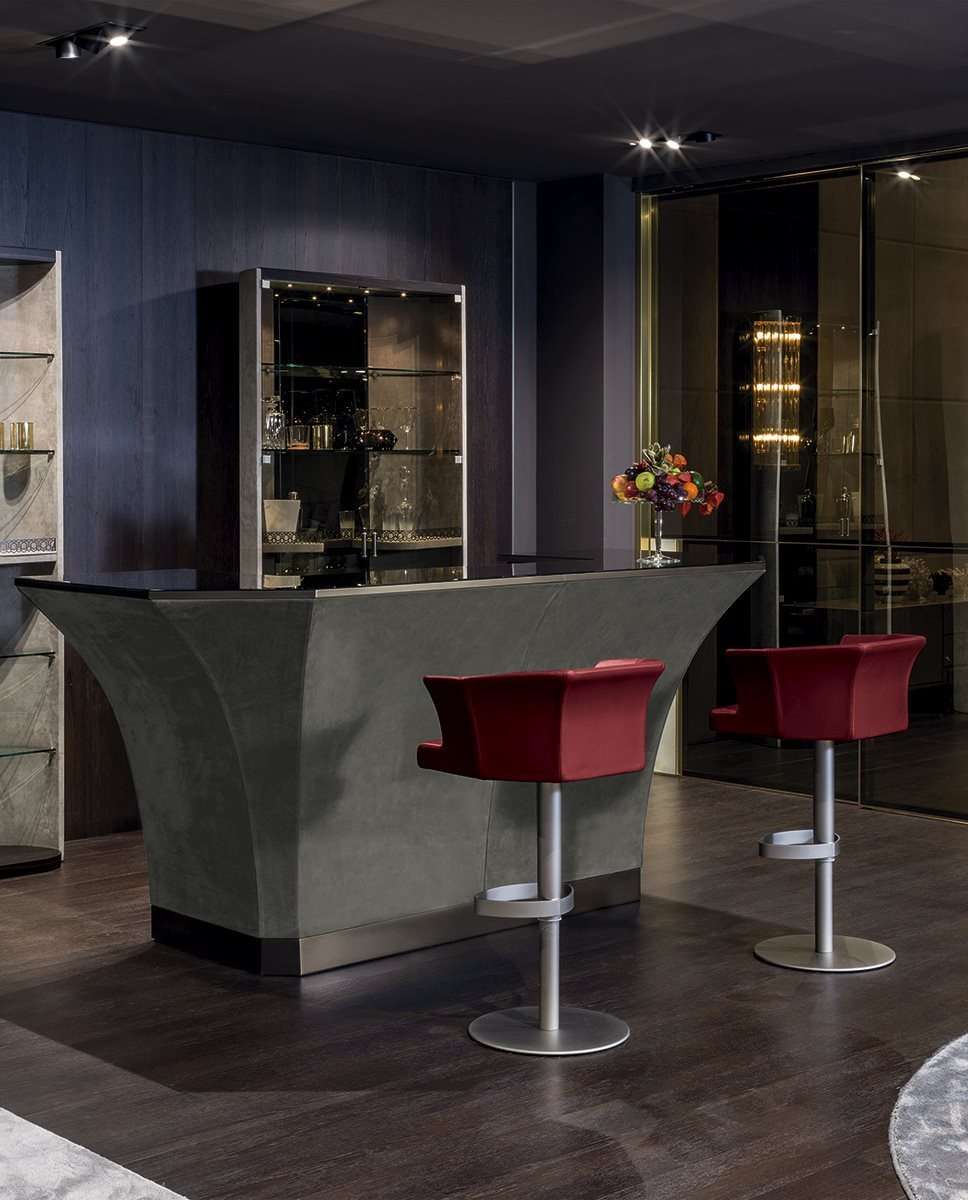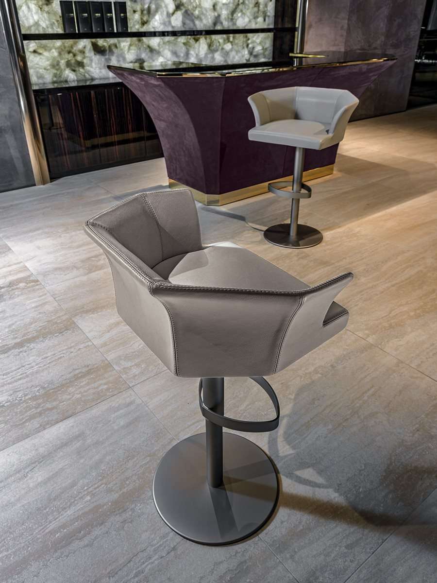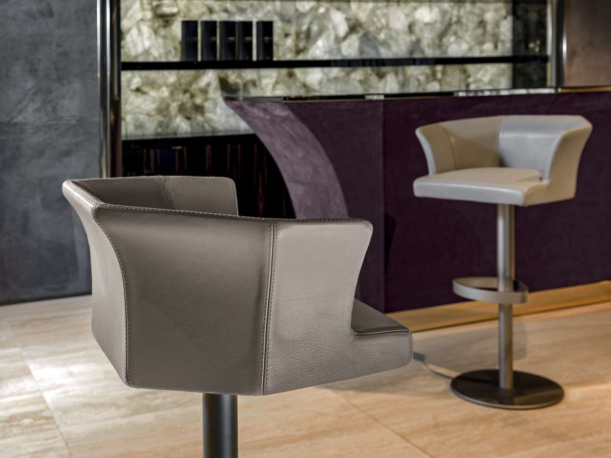 Благодаря своей формальной элегантности и абсолютно сбалансированным пропорциям этот табурет подойдет для обстановки и жилых домов, и гостиниц. Табурет округлой волнообразной формы, полностью сочетающийся с барным шкафом Grandelon. Основание может поворачиваться на 360° и регулироваться по высоте посредством телескопической стойки с газовым механизмом “Stabilus”.