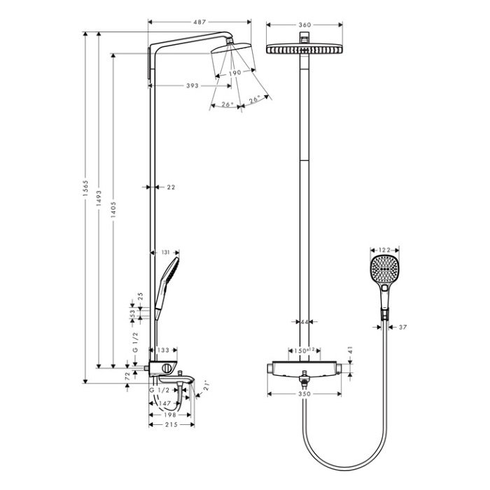Raindance Select E Hansgrohe Raindance E Showerpipe 360 1jet с термостатом для ванны, цвет: хром
