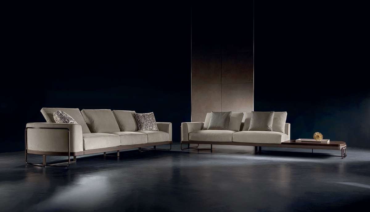 Для всех изделий, созданных по проекту Giuseppe Viganò, характерно наличие одинаковой трубчатой боковины с металлической отделкой, обтянутой материалом «Renova», особым видом переработанной экологичной антибактериальной кожи, которая сочетается или контрастирует с цветом основной обивки. В основании предусматривается металлический пояс, изящно обтянутый этим новым материалом, напоминающим натуральную кожу. Вся конструкция опирается на прочные металлические ножки. Диван Edgar современен как пропорциями, так и объемами. Квадратный каркас размещает систему удобных подушек правильной формы, приглашая к сдержанному отдыху.