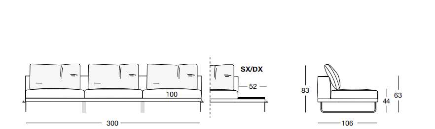 EDGAR 300х106 см LONGHI Центральная секция дивана