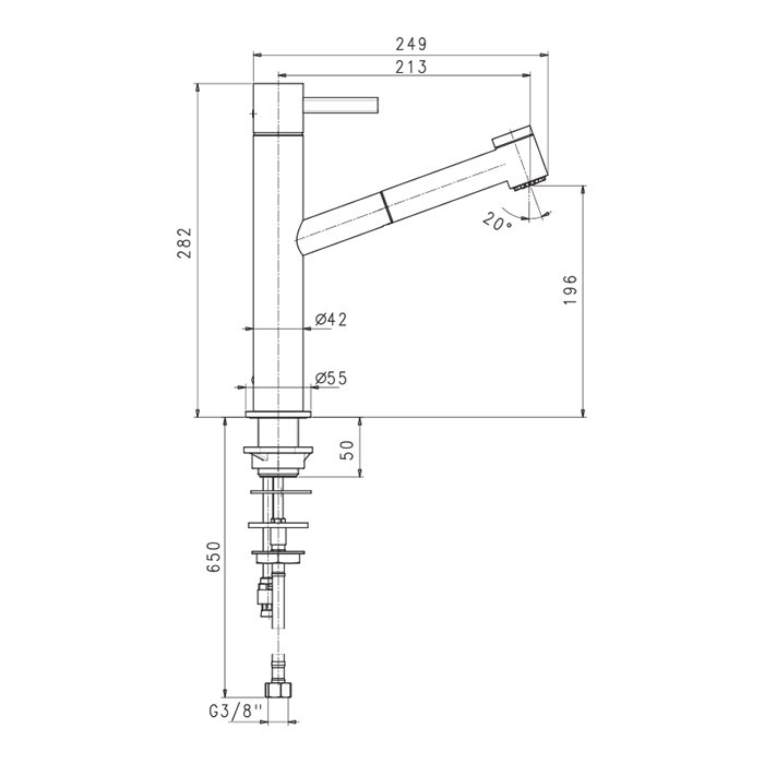 AF/21 Fantini AF/21 Смеситель для раковины, 1 отв., без донного клапана, излив 213мм, цвет: хром
