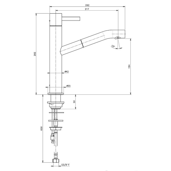 AF/21 Fantini AF/21 Смеситель для раковины, 1 отв., без донного клапана, излив 217мм, цвет: хром