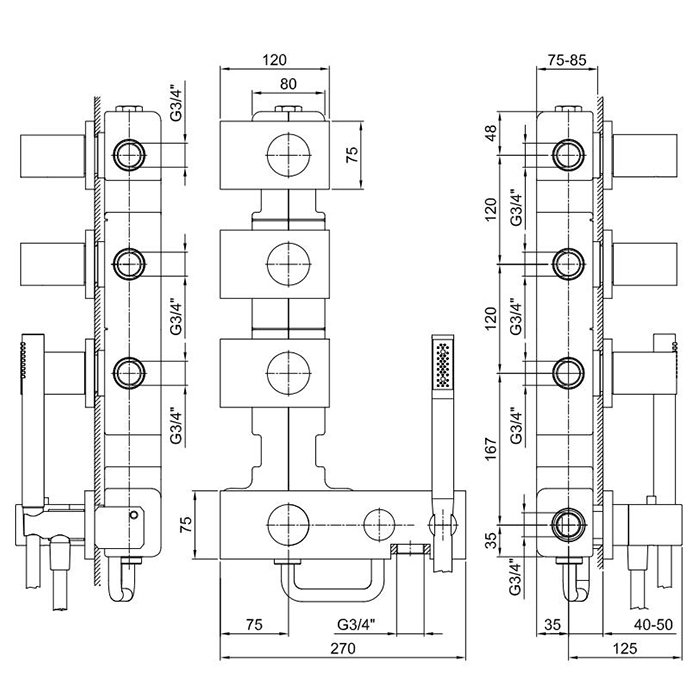 Ceadesign FLAG Насте...Ceadesign FLAG Настенный набор из 2 прогрессивных смесителей для душа с круглым ручным душем Ø 80 мм, 3 отверстия, цвет на выбор