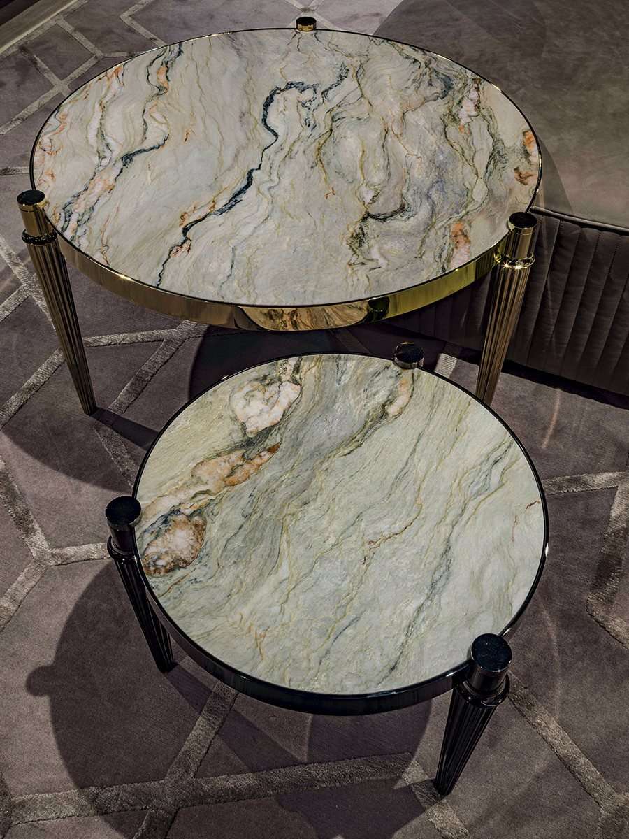 Серия круглых столиков с тремя ножками, которые могут устанавливаться друг на друга. Благодаря многочисленным размерам и сочетающемуся пуфу рекомендуется создавать композиции из нескольких столиков. Felix выполнен из металла, отличается рифлеными коническими ножками и может иметь столешницу из мрамора или дерева. Изделие носит универсальный характер и обладает удивительной гибкостью благодаря многообразию отделок.