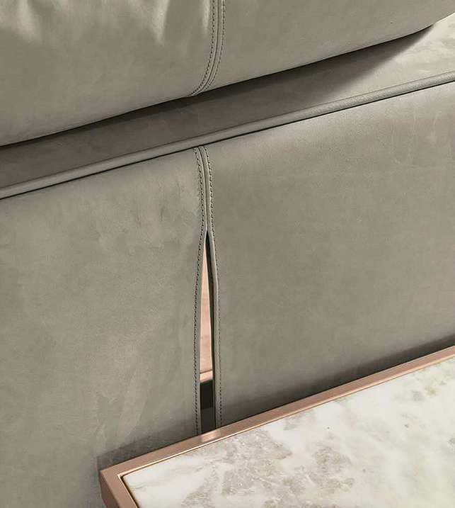 Эксклюзивный диван, изысканный и узнаваемый благодаря своему качеству, современного дизайна с чистыми минималистичными линиями: отличительной чертой этого проекта является вертикальный разрез с металлической вставкой в пространственном стиле XX века.