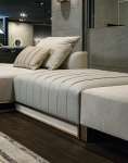 Эксклюзивный диван, изысканный и узнаваемый благодаря своему качеству, современного дизайна с чистыми минималистичными линиями: отличительной чертой этого проекта является вертикальный разрез с металлической вставкой в пространственном стиле XX века.