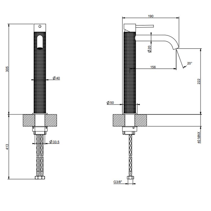 GESSI 316 Смеситель для раковины на 1 отверстие, высокий, h=305мм, без донного клапана, излив 156мм, цвет: brushed black metal pvd