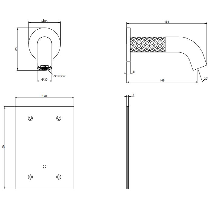 GESSI 316 INTRECCIO Смеситель для раковины настенный, электронный, излив 146 мм., внешняя часть, цвет Steel Brushed