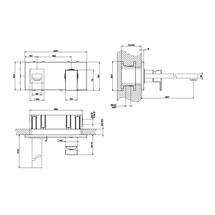 Gessi Rettangolo Встраиваемый однорычажный смеситель, излив 256мм(внешние части), цвет: черный