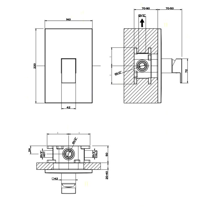 Rettangolo Shower Gessi Rettangolo Встраиваемый однорычажный смеситель(внешние части), цвет: хром
