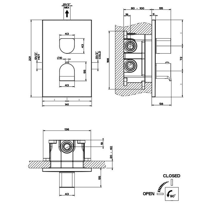 GESSI Rilievo Встраиваемый смеситель для душа, термостатический, на 1 источник (внешние части), цвет: nero XL