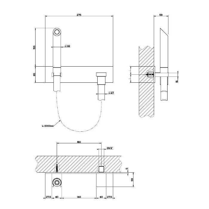 GESSI Rilievo Штанга...GESSI Rilievo Штанга в комплекте с душевой лейкой, шланг 1,50 м, вывод воды из стены, цвет: nero XL