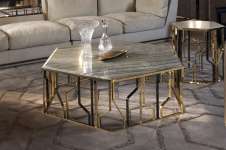 Обязательный элемент коллекции Loveluxe, известная серия столиков, консолей, шкафов, отличающихся неповторимым стилем Алессандро Ла Спады. Столики Ginza можно помещать в центре комнаты или рядом с диванами. Они имеют четкие и строгие столешницы шестиугольной формы и необычное основание, декорированное планками из глянцевого или матового металла, напоминающими стилизованные «вспышки»:символ всей серии Ginza.