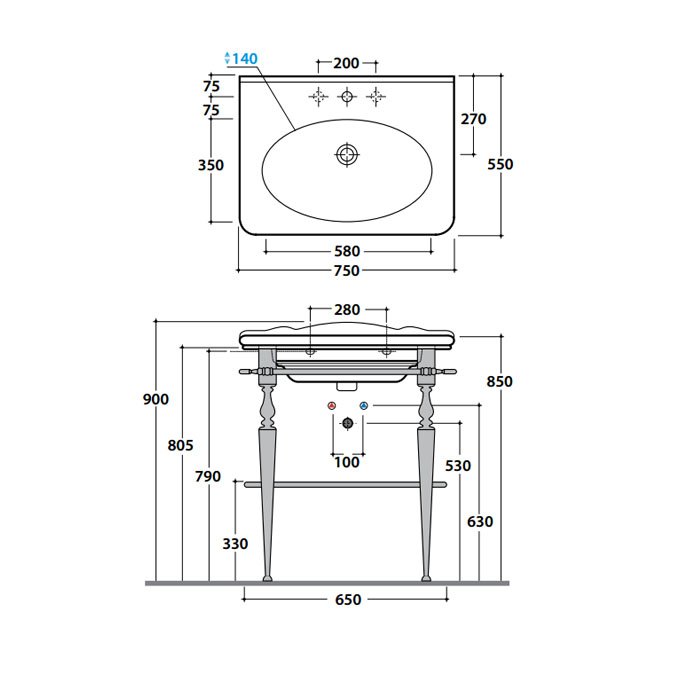 Globo Paestum Консоль напольная 75x53x90см с раковиной на 1 отв, хромированная