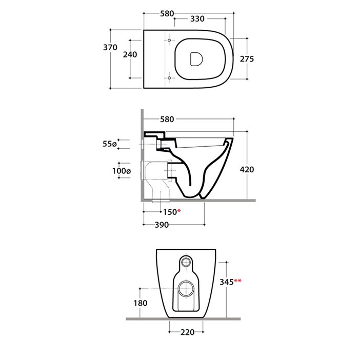 Mare 54x37xh28 см Ci...Mare 54x37xh28 см Cielo Унитаз подвесной, безободковый, с крепежами, цвет: белый глянцевый