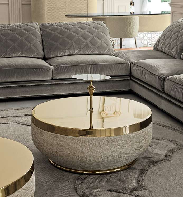 CONTARINI ø110/132xh...CONTARINI ø110/132xh35 см Vittoria Frigerio Маленький столик платина/кожа (версия А)