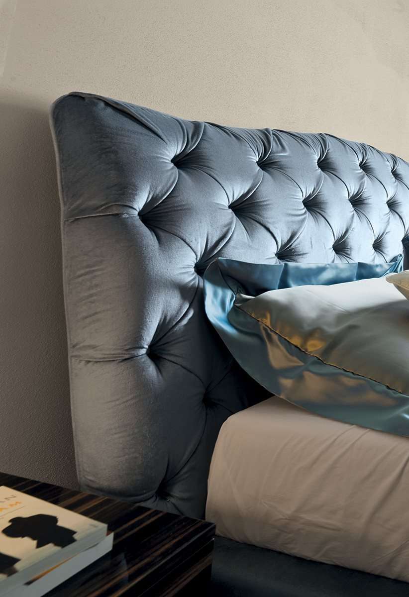 Кровать GRACE с классическим волнообразным изголовьем, декорированным простежкой капитоне. Мягкое покрытие может украшаться пуговицами из ткани, бархата или кожи в тон или ценными кристаллами Swarovski. Результат впечатляет, делая кровать главным элементом интерьера.