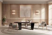 Кресло Grace с подлокотниками, дизайн Andrea Bonini, воплощает в своем названии изысканные пропорции деревянной конструкции: деревянные ножки плавно переходят в подлокотники, создавая целостный силуэт, объединенный каркасом сиденья, который соединяет внешнюю часть подлокотников с подушкой. Непрерывность дизайна подчеркивается мягким сиденьем и внешней частью корпуса подлокотников, украшенной изысканной рельефной вышивкой. Уютный и элегантный обеденный стул с подлокотниками, сочетающий в себе изысканный дизайн и максимальный комфорт.