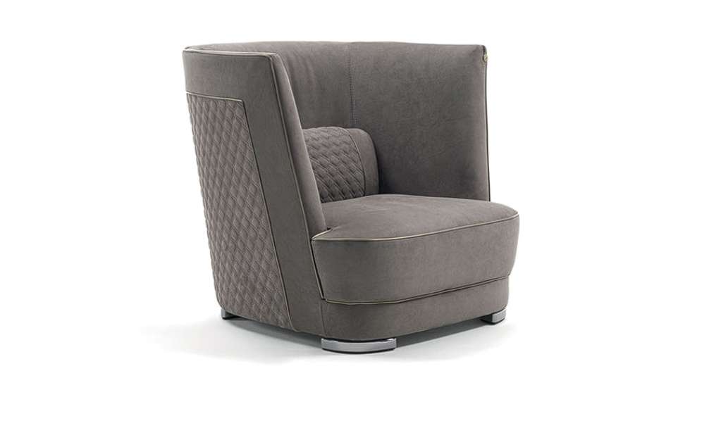 Кресло Greppi отличается сбалансированными пропорциями, создавая эффект уютного гнезда благодаря обволакивающей спинке во всю высоту. Стеганые вставки на внешней стороне спинки и на встроенной поясничной подушке – яркий пример портновского мастерства коллекции Vittoria Frigerio. Greppi – изделие вне времени, но при этом чрезвычайно современное по своим пропорциям и материалам.