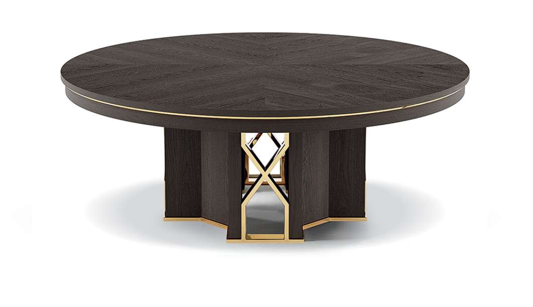 Стол Grimaldi — это предмет мебели, отличительными чертами которого являются роскошь и солидность. Коллекция столов Grimaldi, представленная в круглом и прямоугольном вариантах, подчёркивает контраст между деревянной конструкцией и металлическими вставками на столешнице и ножках. Строгая эстетика Grimaldi смягчается изысканностью металлической отделки, создавая массивный, но в то же время изысканный стол.
