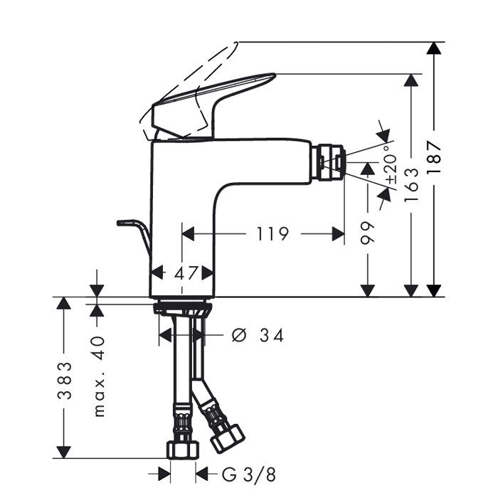 - состоит из: однорычажный смеситель для биде, слив/перелив