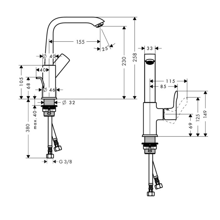 - вид соединения: соединительные шланги G ⅜