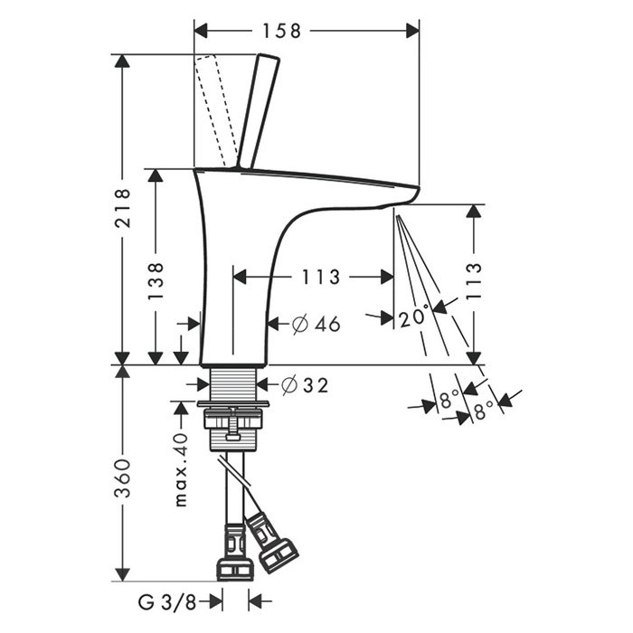 - состоит из: однорычажный смеситель для раковины, слив/перелив