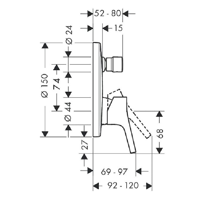 Gessi Eleganza Встра...Gessi Eleganza Встраиваемый однорычажный смеситель с автоматическим переключателем ванна/душ(внешние части), цвет: Finox