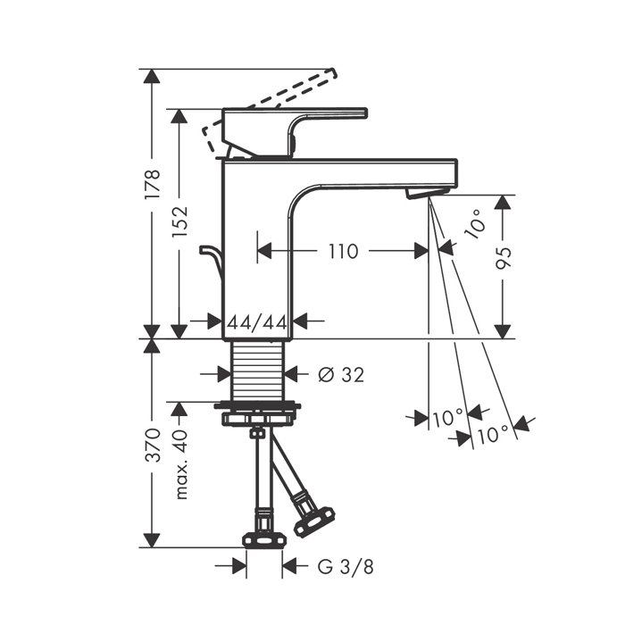 Hansgrohe Vernis Shap Смеситель для раковины, излив 100 мм, со сливным гарнитуром, цвет: матовый черный