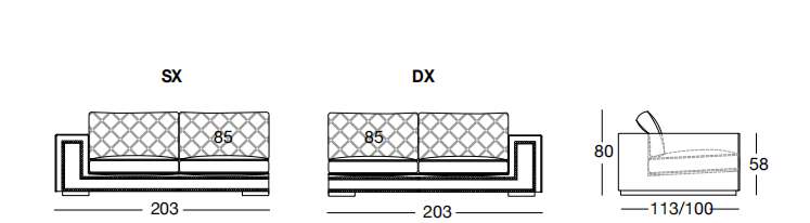 HELMUT 203х113/110 см LONGHI Боковая секция дивана (SX/DX)