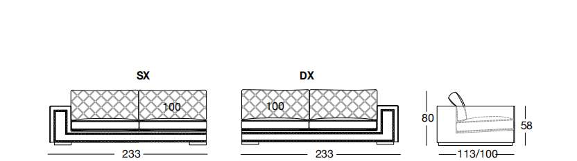 HELMUT 233х113/110 см LONGHI Боковая секция дивана (SX/DX)