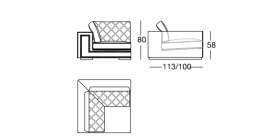 HELMUT 113х113/100х100 см LONGHI Угловая секция дивана с мягким подлокотником